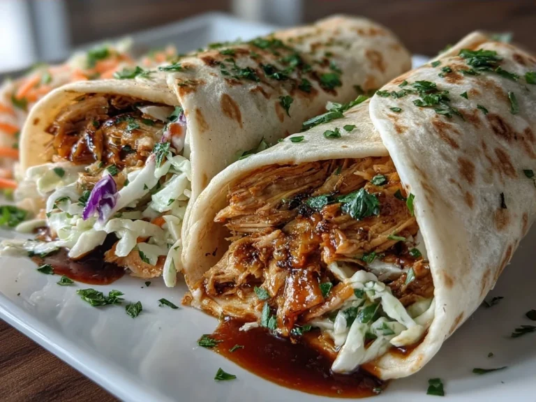 These BBQ Chicken and Coleslaw Wraps combine tender, smoky chicken with crisp, tangy coleslaw for a delicious and easy-to-make meal perfect for lunch or dinner.