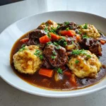 Okay, amigos! Let’s talk about something that’s going to warm your soul and blow your taste buds straight to Havana: Beef Stew and Dumplings! This isn’t your grandma’s bland stew (unless your grandma is a flavor rebel like me!). We’re talking about a deeply rich, savory beef stew piled high with fluffy, golden dumplings. Trust me, one bite of this, and you’ll understand why it’s a Cuba Queen staple.